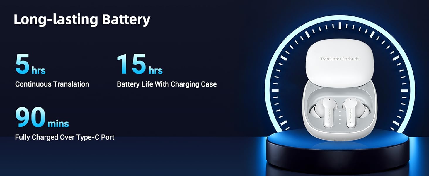 3-in-1 Bluetooth Translator Earbuds (Music, Calling, Translation )