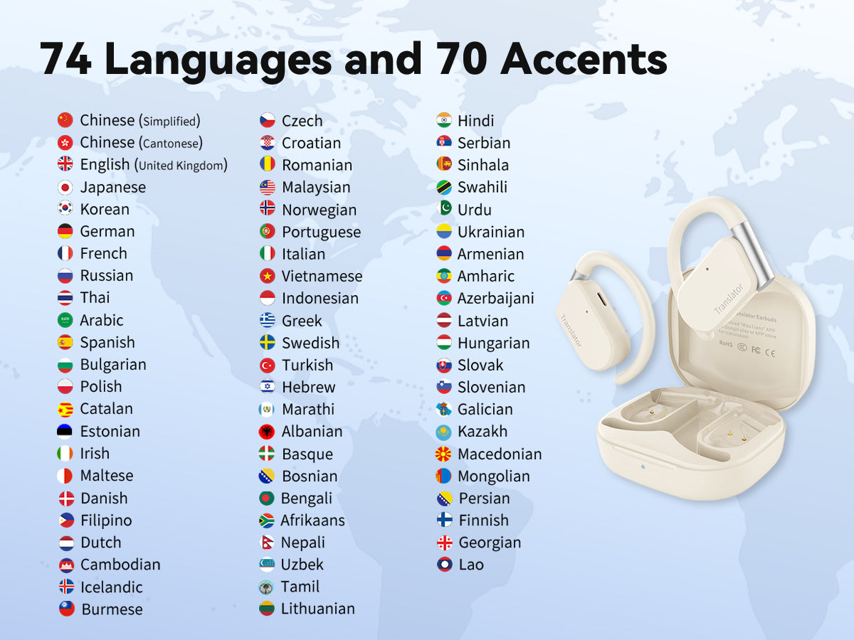 With the Wooask M9 Open Ear Language Translator Earbuds, you have access to high-quality, online translation services at your fingertips. Our advanced technology and expertly designed earbuds allow for fast and accurate translations from a variety of languages. Say goodbye to language barriers and hello to seamless communication.