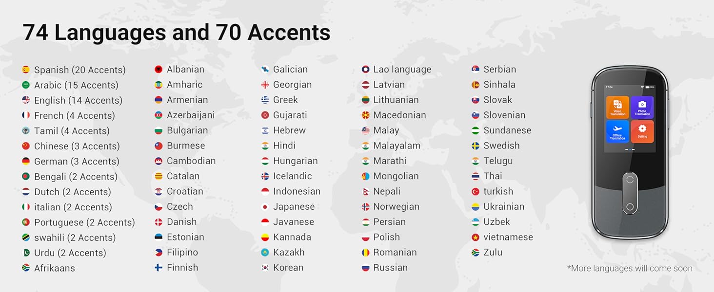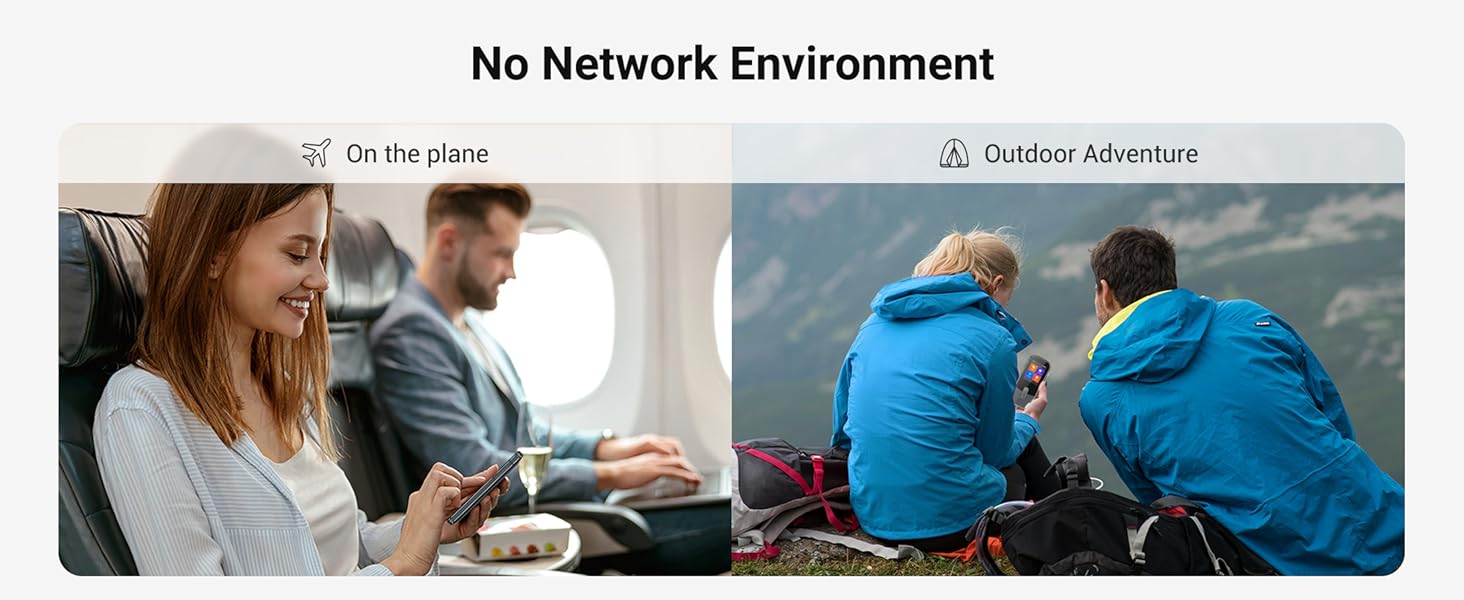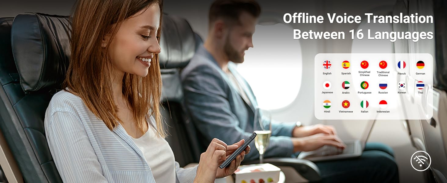 The Wooask® W09 Translator can operate without internet for most functions. It provides offline translation capabilities for 16 major languages, such as Spanish, English, Chinese, Japanese, French, German, Arabic, Russian, Korean, and Thai.