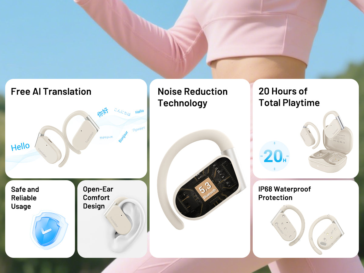3-in-1 Bluetooth Translator Earbuds (Music,