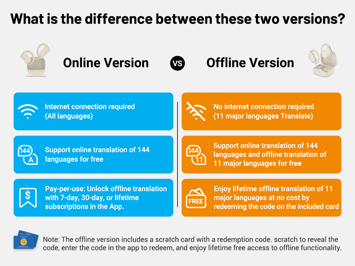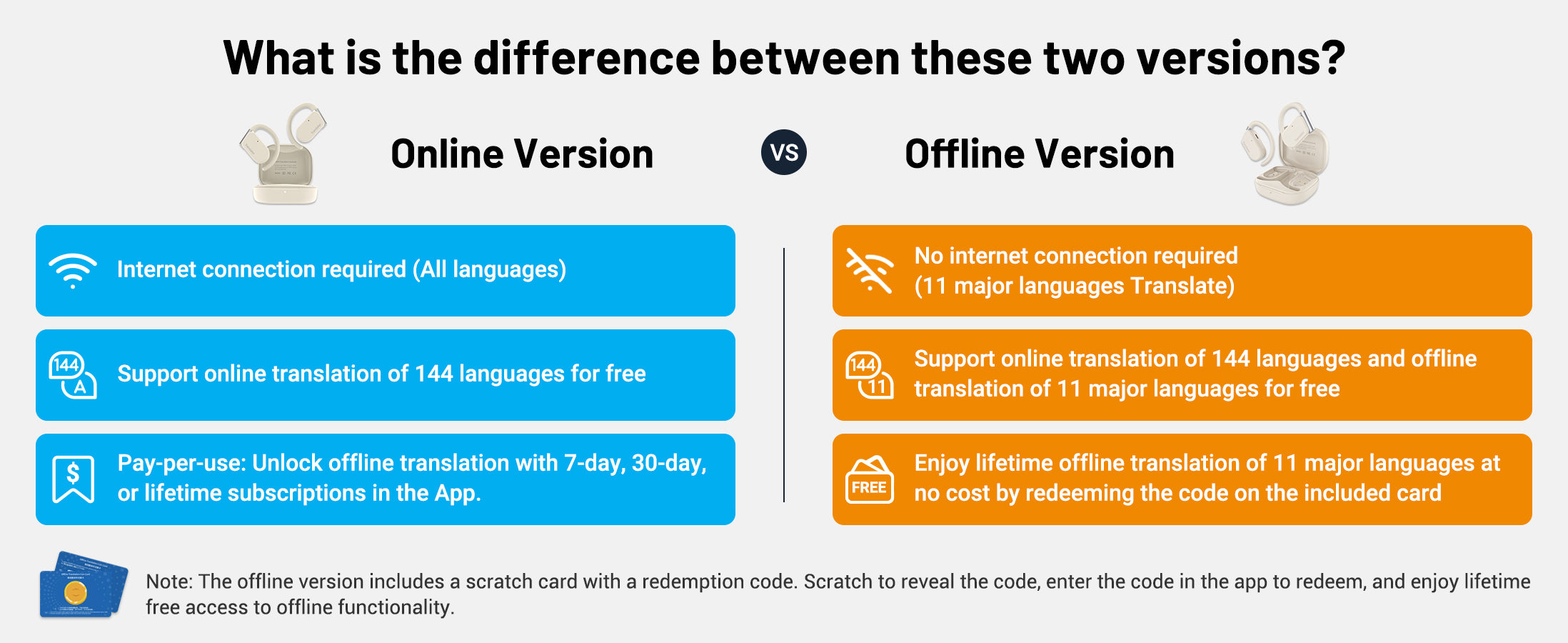 Our Wooask® M9 Open Ear translation earbuds support both online and offline translation. You can choose the version that suits your needs, and there are no additional fees after purchase.