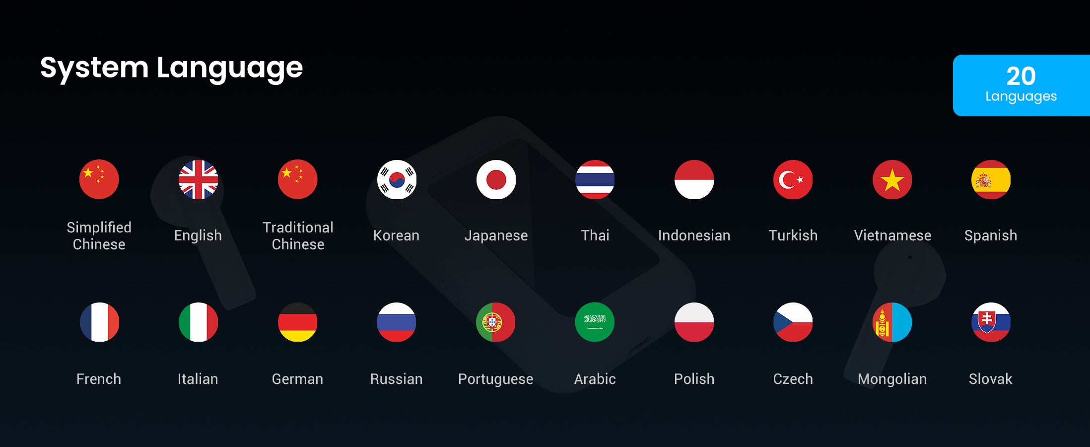 Offline languages: 16 languages (Simplified Chinese, Traditional Chinese, English, Japanese, Korean, Russian, German, French, Spanish, Arabic,Thai,Italian,Portuguese, Hindi,Vietnamese, Indonesian)