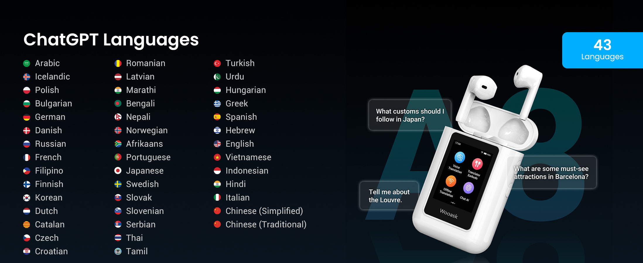 Wooask® A8 AI Language Translator Earbuds Powered by ChatGPT