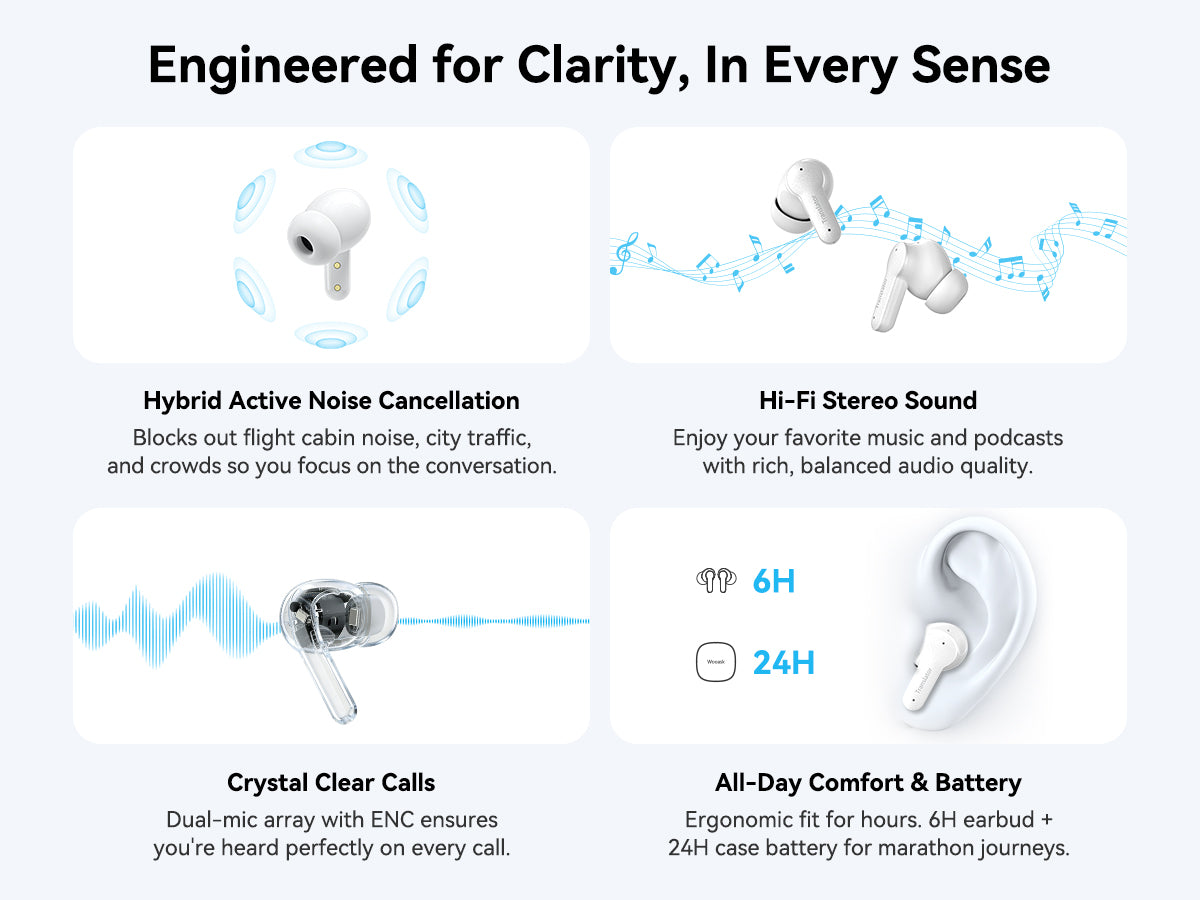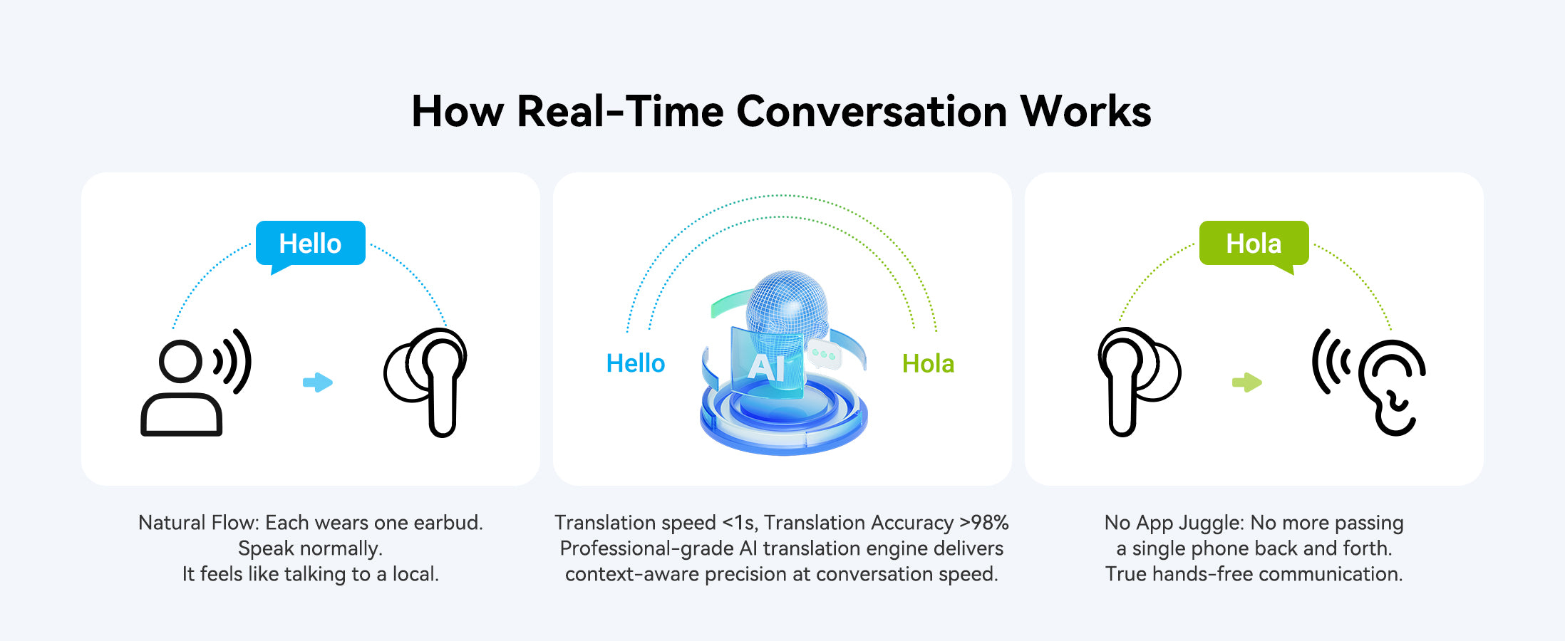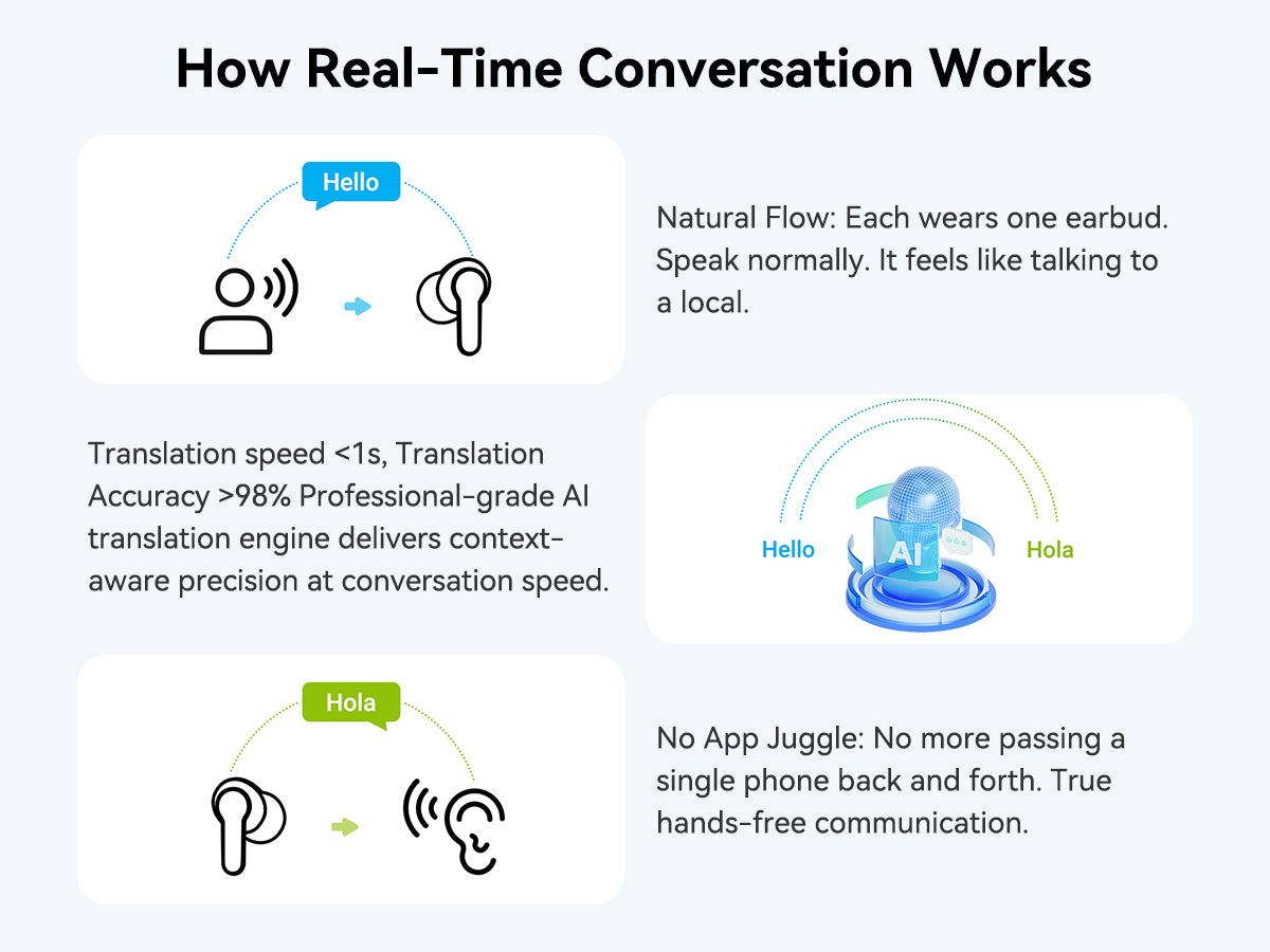 3-in-1 Bluetooth Translator Earbuds (Music, Calling, Translation )